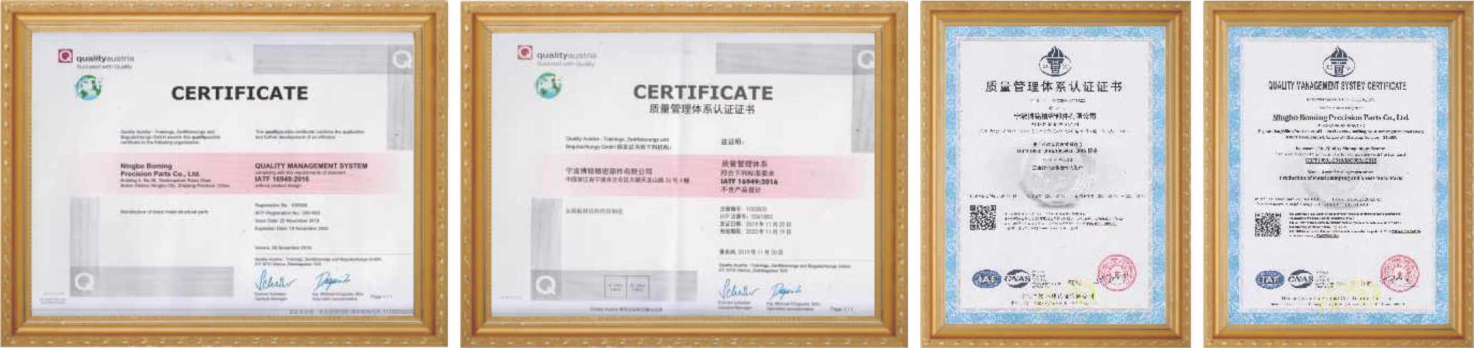 宁波博铭精密部件有限公司集开发、生产为一体;专业设计与生产精密五金模具,五金冲压件,精密金件,成立 2006 年5 月,现拥有员工 80 多人,占地面积 10000 平米。工厂经过不懈的努力奋斗与创新,积累了先进的管理经验,配养了一批高素质的人才,已赢得广大客户认同,公司已通过ISO9001和IATF16949质量管理体系认证,关注细节,注重过程,持续改进,从设计到制作全方位的控制和提升。现已和多家大厂配合,如韵升集团、日本大都、展铭电子、拓普集团·..等同时产品已远销美国、日本、韩国及欧州等地。